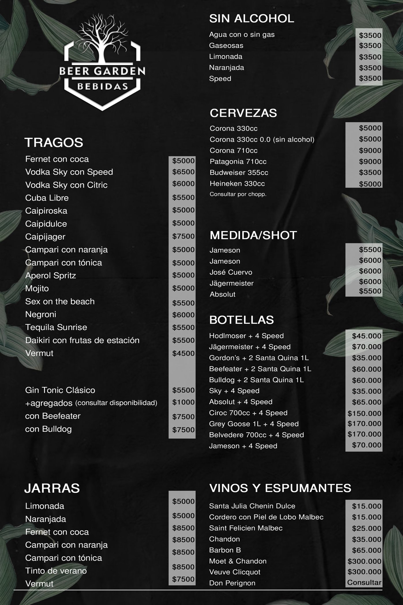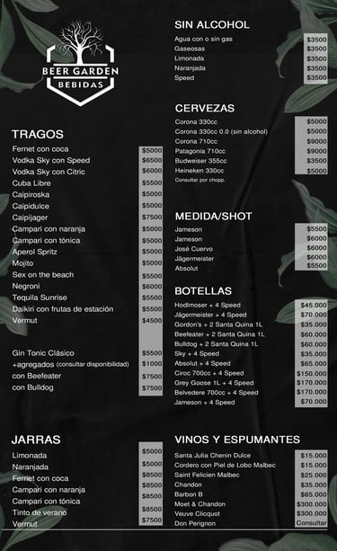 Menú Bebidas